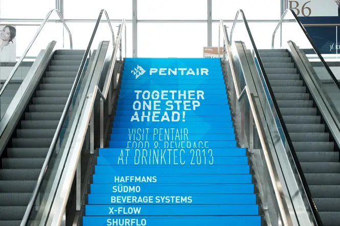 Komplette Messeausstattung mit Bannerkonzepten, Deckenhpängern, Rückwänden und Bodenbeschriftungen für professionelle Auftritte.